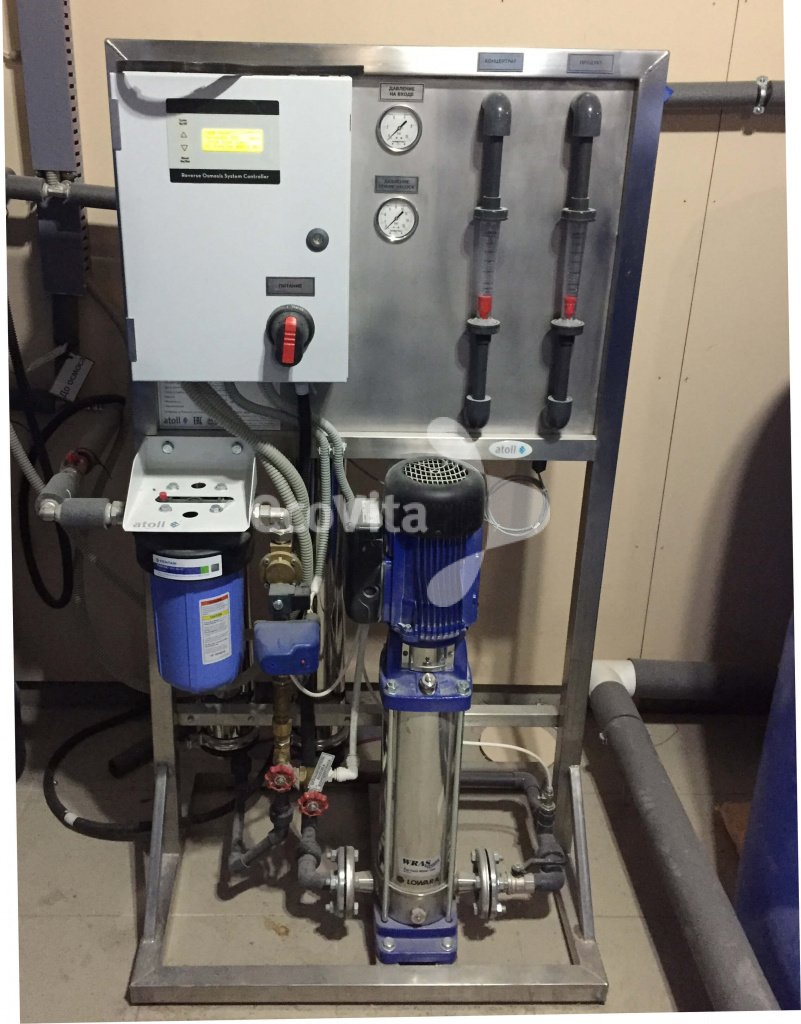Способ при котором все находящиеся в воде примеси удаляются из воды на 99%. Вода проходит через тонкопленочную мембрану и все примеси задерживаются на ней. С точки зрения качества очистки это лидирующий метод, однако стоимость обратноосмотической установки производительностью 250 литров в час начинается от 2 000 $. К осмосу вам потребуется емкость 500 - 1000 литров, куда будет собираться отфильтрованная вода и насос второго подъема, который будет подавать воду из емкости. Поэтому такой метод применяется для удаления солей жесткости крайне редко, например когда одновременно нужно чистить воду от хлоридов.