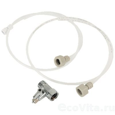 Комплект для установки фильтра питьевой воды BWT. Комплект включает фитинги и гибкие трубки для подсоединения головной части фильтров к смесителю, обеспечивая надежное герметичное соединение. А также тройник для разводки холодной воды