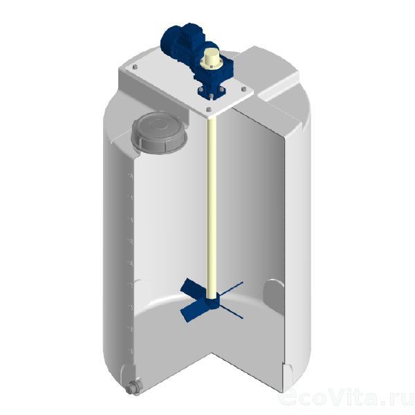 Мешалка лопастная тихоходная Asterion серии Микс L для емкости Анион ДК500. Конструкция миксера включает в себя четырехлопастной пропеллер, вал, привод, жесткое крепление мешалки к валу привода. Используется для перемешивания растворов кислот и щелочей и устанавливаются на емкость.