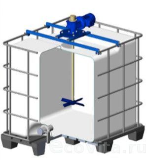 Мешалка лопастная тихоходная Asterion серии Микс L для емкости Еврокуб. Конструкция миксера включает в себя четырехлопастной пропеллер, вал, привод, жесткое крепление мешалки к валу привода. Используется для перемешивания растворов кислот и щелочей и устанавливаются на емкость.