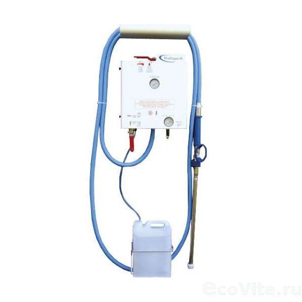 ProFoam-R в дополнение к функциям ProFoam включает функцию ополаскивания. Система подключается непосредственно к контурам воды и сжатого воздуха с низким давлением. Также может быть смонтирована на тележке и с компрессором, в качестве опции. В комплект включены манометры для измерения давления воды и воздуха.