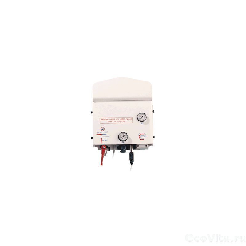 Система подключается непосредственно к контурам воды и сжатого воздуха с низким давлением. Также может быть смонтирована на тележке и с компрессором, в качестве опции. В комплект включены манометры для измерения давления воды и воздуха.