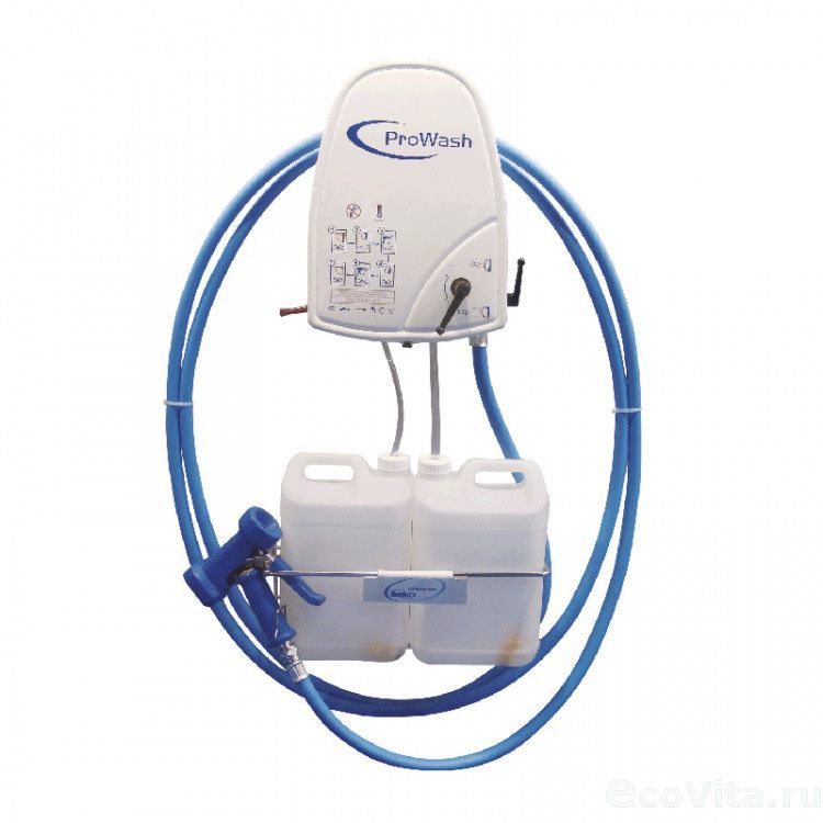 Клининговая система Seko ProWash постоянно и автоматически смешивает нужное количество химических веществ для очистки и/или дезинфекции больших площадей на профессиональных кухнях, в супермаркетах или на предприятиях пищевой промышленности. Модель рассчитана для использования двух реагентов. Система оснащена шлангом длинной 15 м.