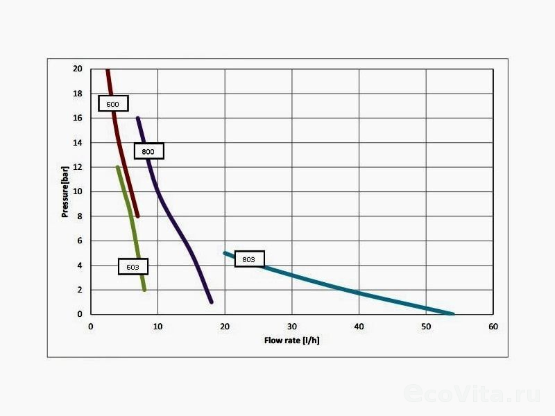 | Противодавление, бар | Расход, л/ч | Макс частота впрысков в мин. |