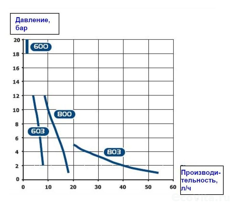 | Противодавление, бар | Расход, л/ч | Макс частота впрысков в мин. |