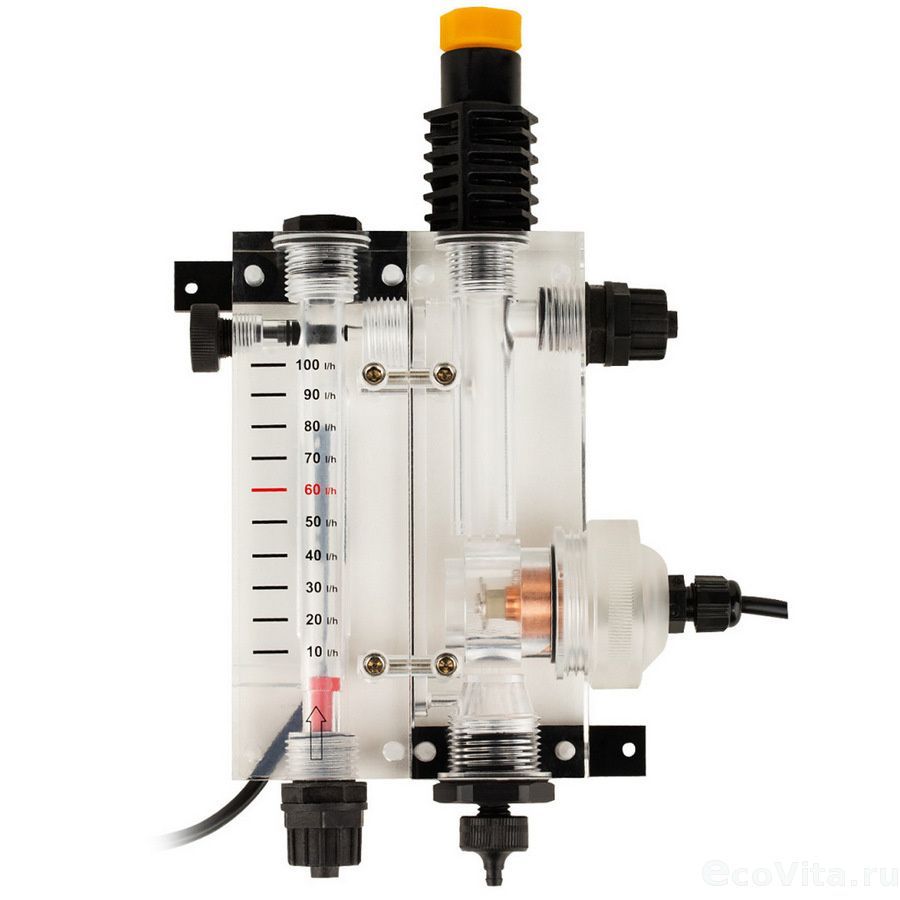 Двухкамерная ячейка для датчиков Seko. Используется для измерения уровня хлора (встроенный датчик) и расходомера. Предназначен для автоматических станций Seko.
