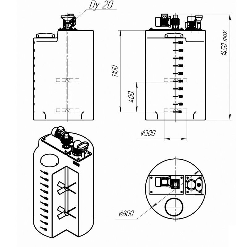 Характеристики установки для приготовления флокулянта для емкости 500 литров: