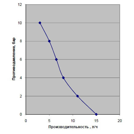 | Противодавление, бар | Расход, л/ч |