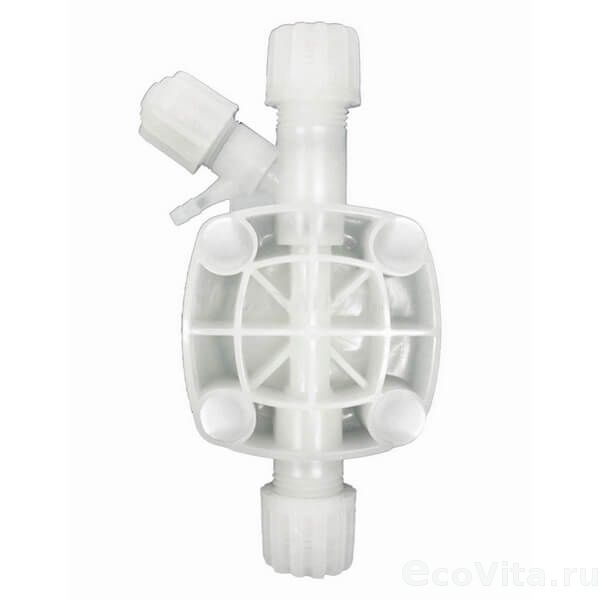 Головка насоса Etatron PVDF, комплектующая деталь мембранного насоса-дозатора производительностью 1-15 л/ч (eONE 20-30). С ручным клапаном стравливания воздуха.