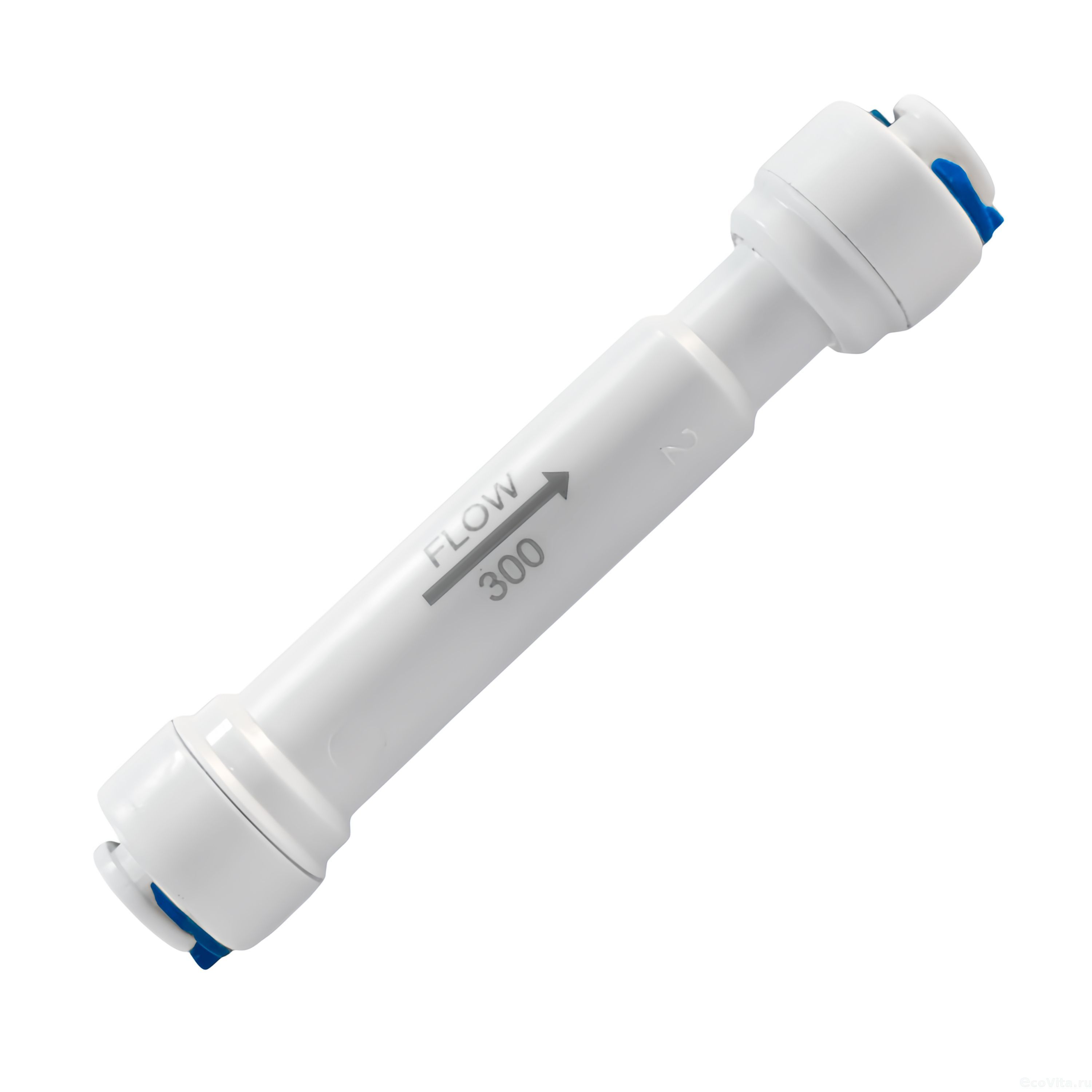 Ограничитель потока дренажа 300 мл/мин используется в обратноосмотических системах. Подходит для установки после мембраны Vontron ULP1812-50 и любых других мембран китайской производства с производительностью 50 галлон/день.