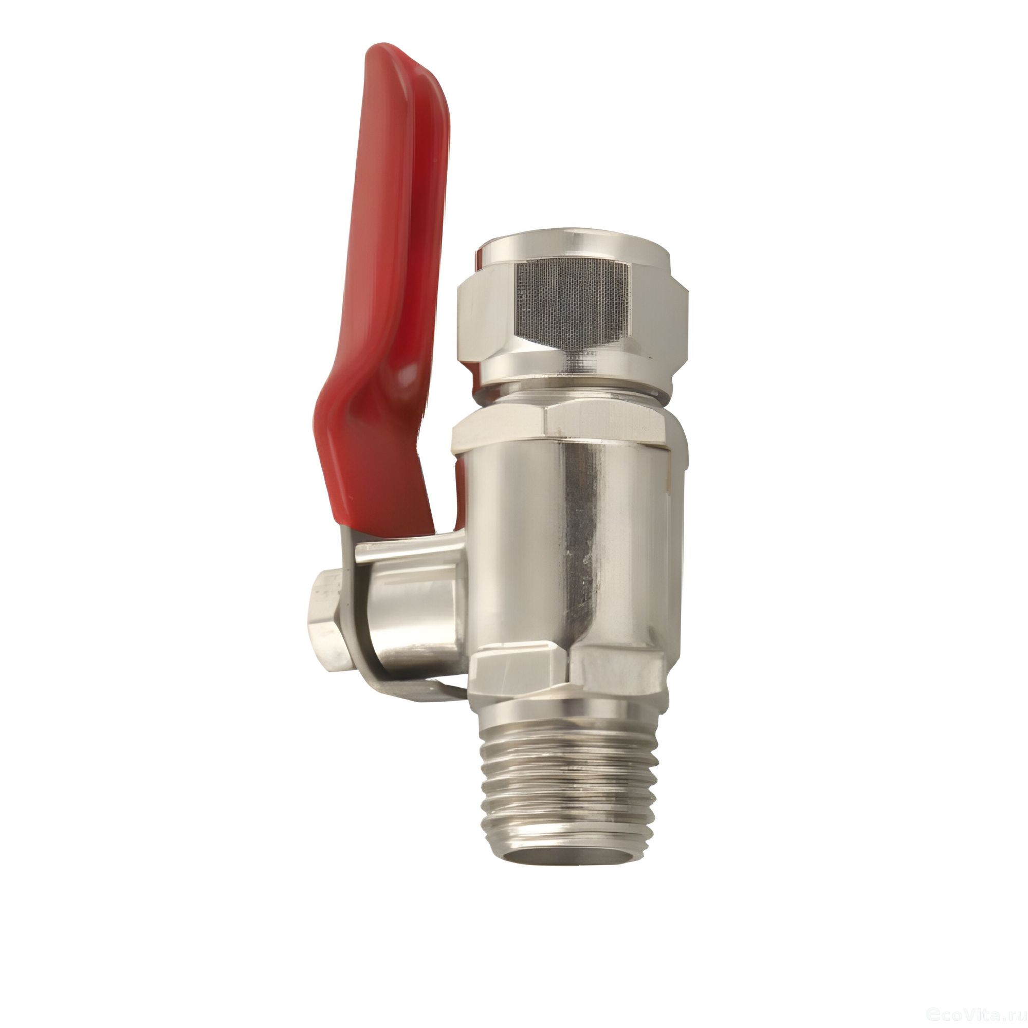 Шаровый запорный кран 1/4" резьба наружная х 3/8" цанга предназначен для подключения к трубопроводу питьевых фильтров и обратноосмотических систем очистки воды.