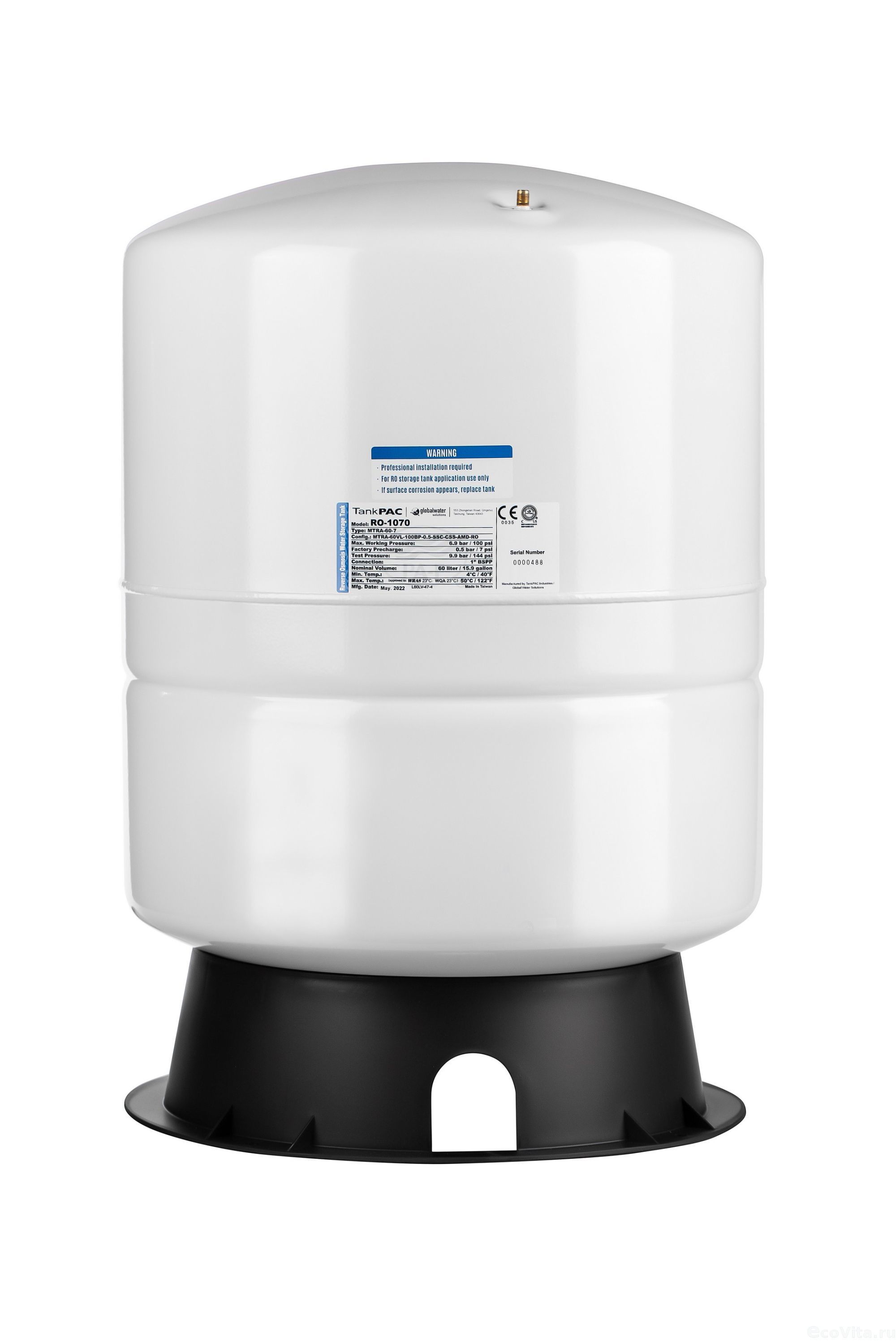 Металлический накопительный бак 14 галлон (≈60 л) предназначен для хранения чистой воды, очищенной системой обратного осмоса. Бак надежно защищен от попадания бактерий и обработан консервантом.
