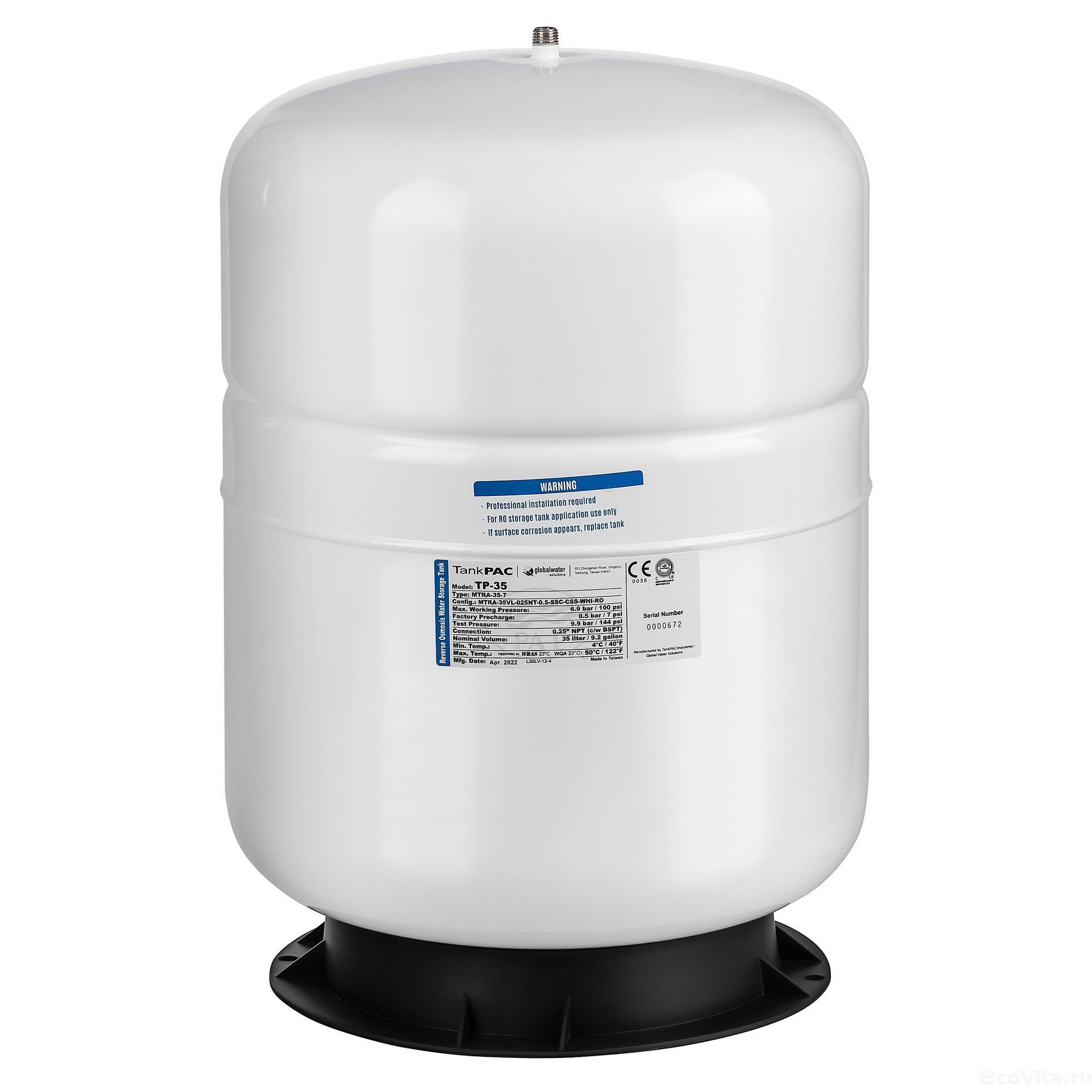 Металлический накопительный бак 9.2 галлона (≈35 л) предназначен для хранения чистой воды, очищенной системой обратного осмоса. Бак надежно защищен от попадания бактерий и обработан консервантом.