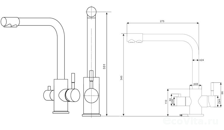 Отдельный излив для питьевой воды и отдельный для водопроводной, вода проходит по разным каналам, не соприкасаясь друг с другом. Кран изготовлен из современных и экологически безопасных материалов. Современный дизайн и простота использования. Устанавливается на мойку или столешницу в любом удобном для эксплуатации месте. Набор для установки в комплекте.