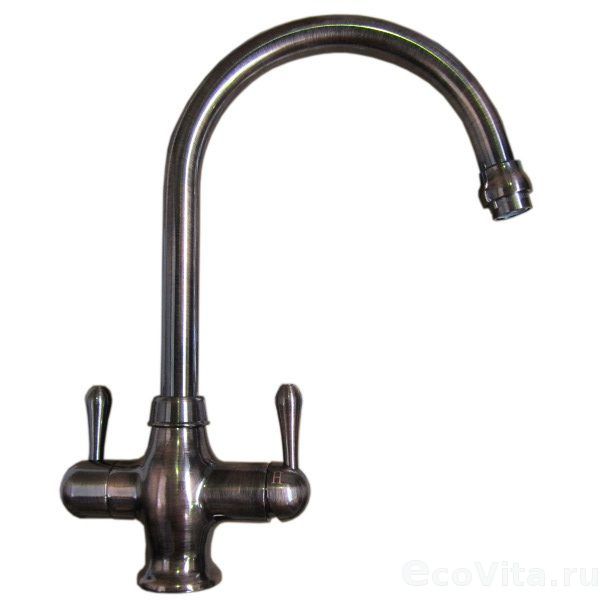 Комбинированный кран Atoll NKD0312AW. При использовании комбинированного питьевого крана отпадает необходимость вырезать в кухонной мойке дополнительное отверстие. Питьевая вода и общий поток воды в нем, не смешиваясь, подаются через разные сопла в одном кране, что экономит место над раковиной.