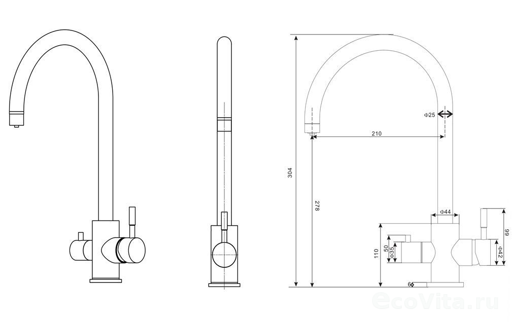 Отдельный излив для питьевой воды и отдельный для водопроводной, вода проходит по разным каналам, не соприкасаясь друг с другом. Кран изготовлен из современных и экологически безопасных материалов. Современный дизайн и простота использования. Устанавливается на мойку или столешницу в любом удобном для эксплуатации месте. Набор для установки в комплекте.