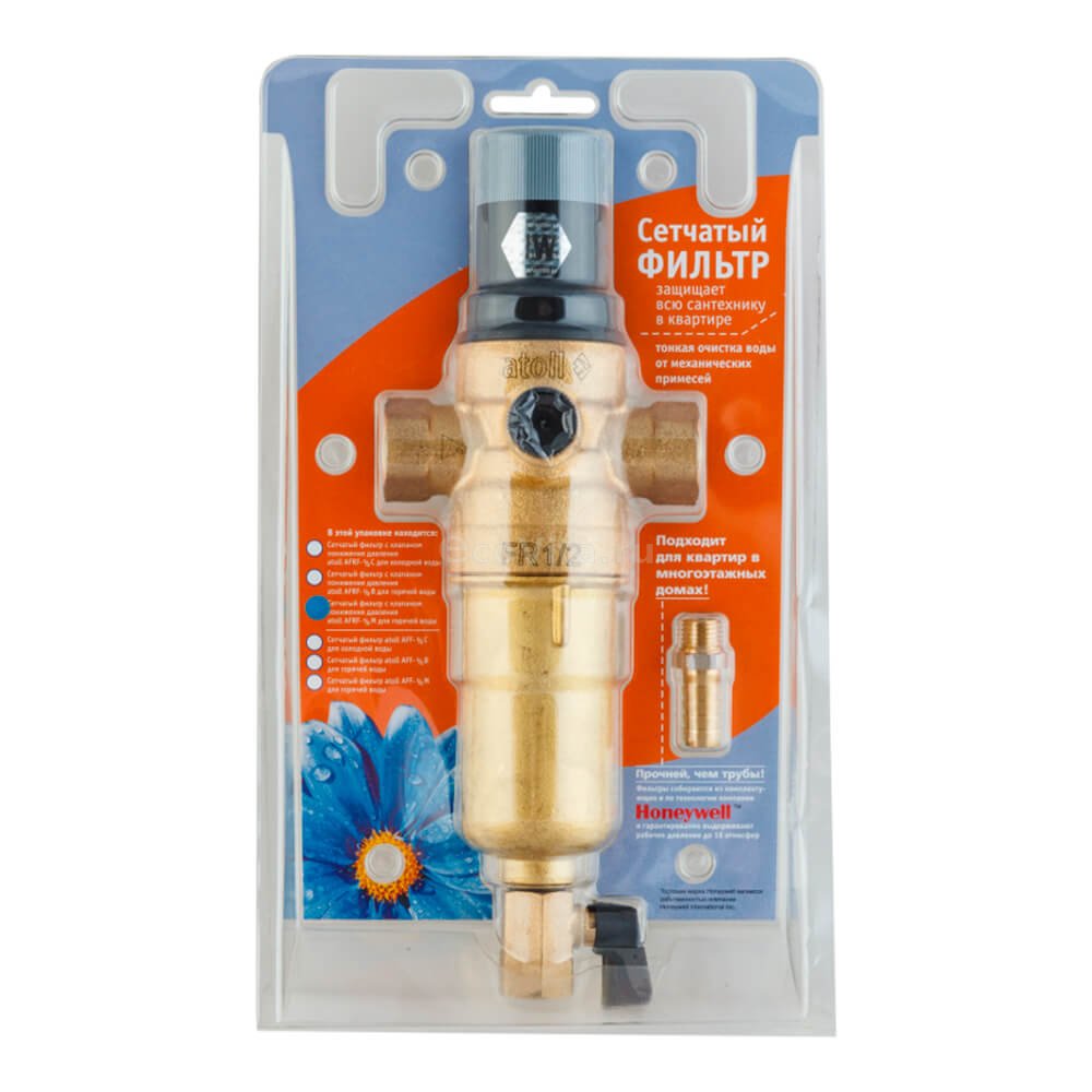 Комбинированный сетчатый фильтр Atoll FK06-1/2AM для горячей воды является аналогом Honeywell FK06-1/2" AAM.