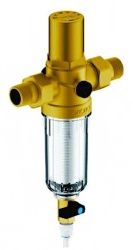 Фильтр грубой очистки обладает компактными размерами и подходит для монтажа в небольших по площади местах. В обычном рабочем режиме пропускает воду через сетчатый элемент фильтра к выпускному отверстию корпуса. Для промывки фильтра открывается шаровой клапан, который пропускает задержанные частицы.