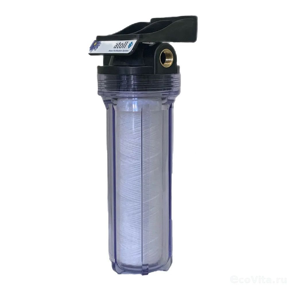 Корпус магистрального фильтра Atoll Патриот SL10-1/2 c картриджем МП-5 устанавливается на "входе" холодной воды в квартиру или загородный дом.