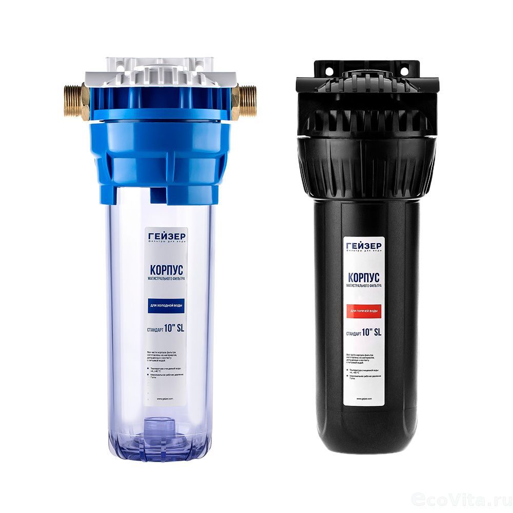 Комплект магистральных фильтров Гейзер Оптимум 10SL 3/4" для очистки холодной и горячей воды в квартире или загородном доме.