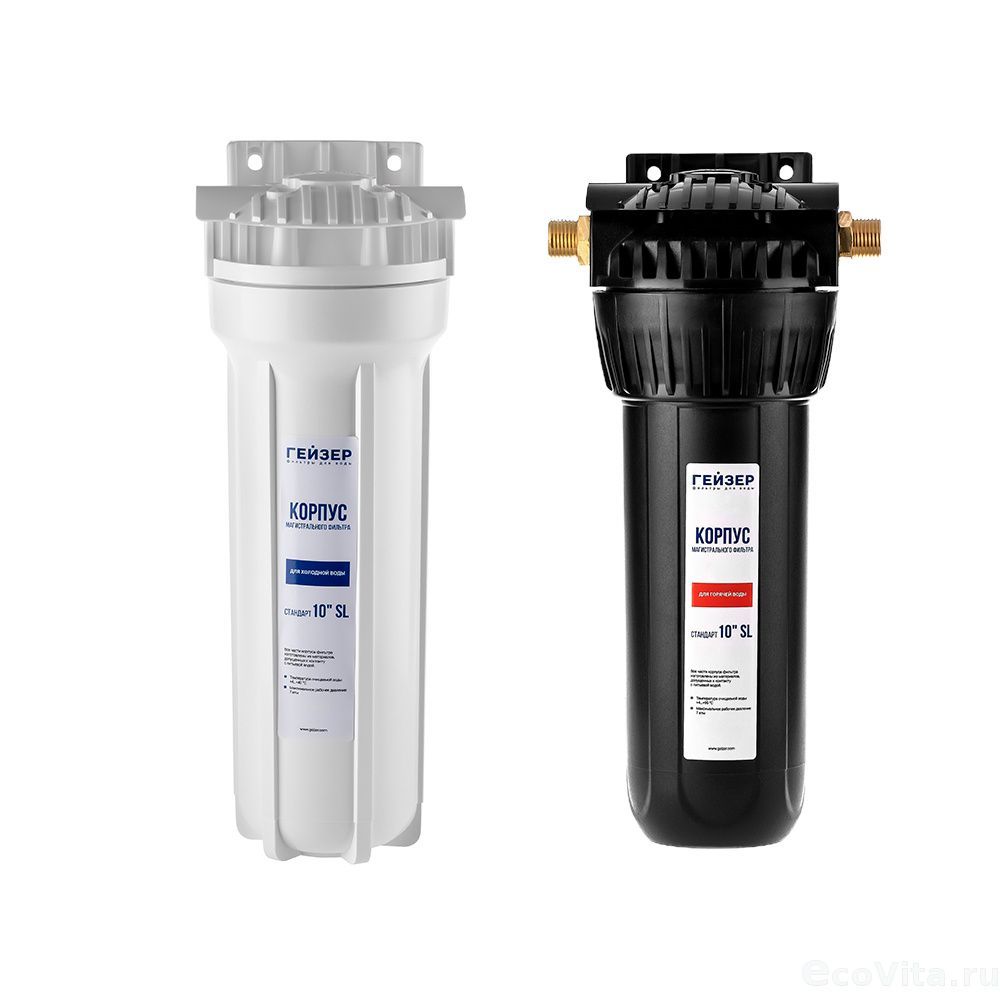 Комплект магистральных фильтров Гейзер Стандарт 10SL 1/2" для очистки холодной и горячей воды в квартире или загородном доме.