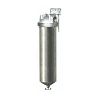 Составные части корпуса выполнены из нержавеющей стали (SUS 304), это позволяет работать в водой и другими жидкостями, неагрессивными к нержавеющей стали. Крышка имеет два выхода с внутренней резьбой 3/4", жестко фиксируется к корпусу и уплотняется при помощи нескольких уплотнительных колец во избежание образования протечек. В нижней части расположен клапан промывки. В корпус могут устанавливаться как обыкновенные картриджи стандарта 20SL.