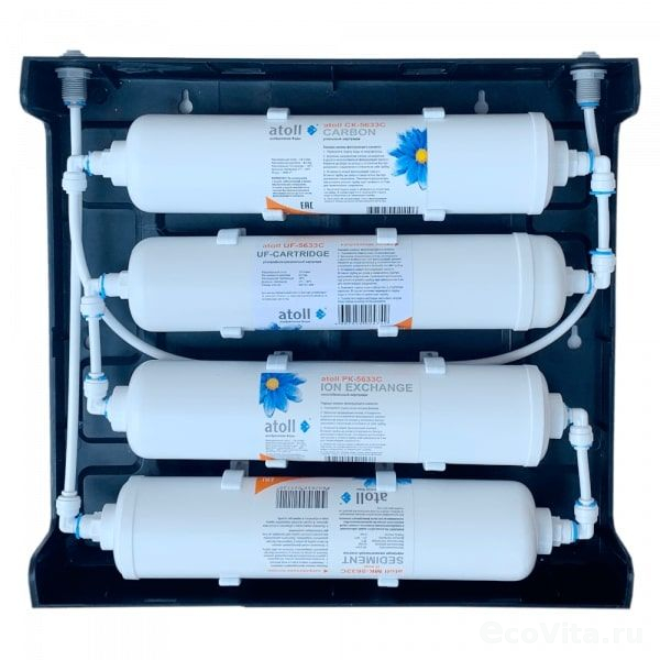 Ультрафильтрационный проточный питьевой фильтр atoll Slim U-40s - четыре ступени очистки эффективно удаляют механические загрязнения, хлор и его соединения, к тому же умягчают и обеззараживают воду. Особенность фильтра - ультратонкая очистка воды - осуществляется ультрафильтрационными волокнами картриджа UF-5633. Размер пор волокон составляет не более 0,1 мкм, это позволяет удалять из воды практически весь бактериальный состав, в то же время минеральный состав природной воды сохраняется.
