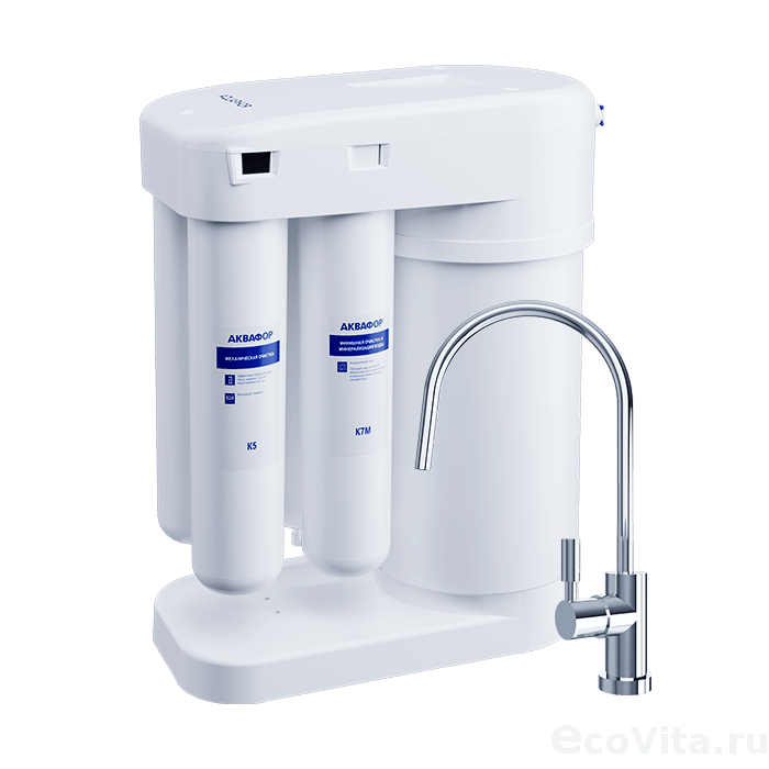 Прост в установке и обслуживании. Работает даже при низком давлении водопровода и позволяет экономить до 9 тонн воды в год. Соотношение чистой воды поступающей в бак и воды уходящей в дренаж составляет 1/4. Входящий в комплект минерализатор активно насыщает воду полезными веществами. Аквафор DWM 101 Морион очищает воду от активного хлора, солей жесткости, ржавчины, нитратов, свинца, бактерий, органических примесей, фенолов, нефтепродуктов и тяжелых металлов.