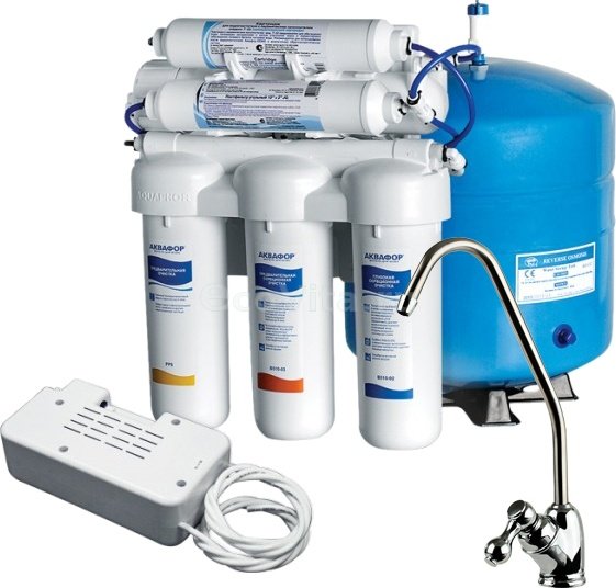 Система очистки воды Аквафор Осмо 50 исп. 5 с КПД используется, если показатели давления в водопроводе составляют менее 0,34 МПа (3,5 ат).