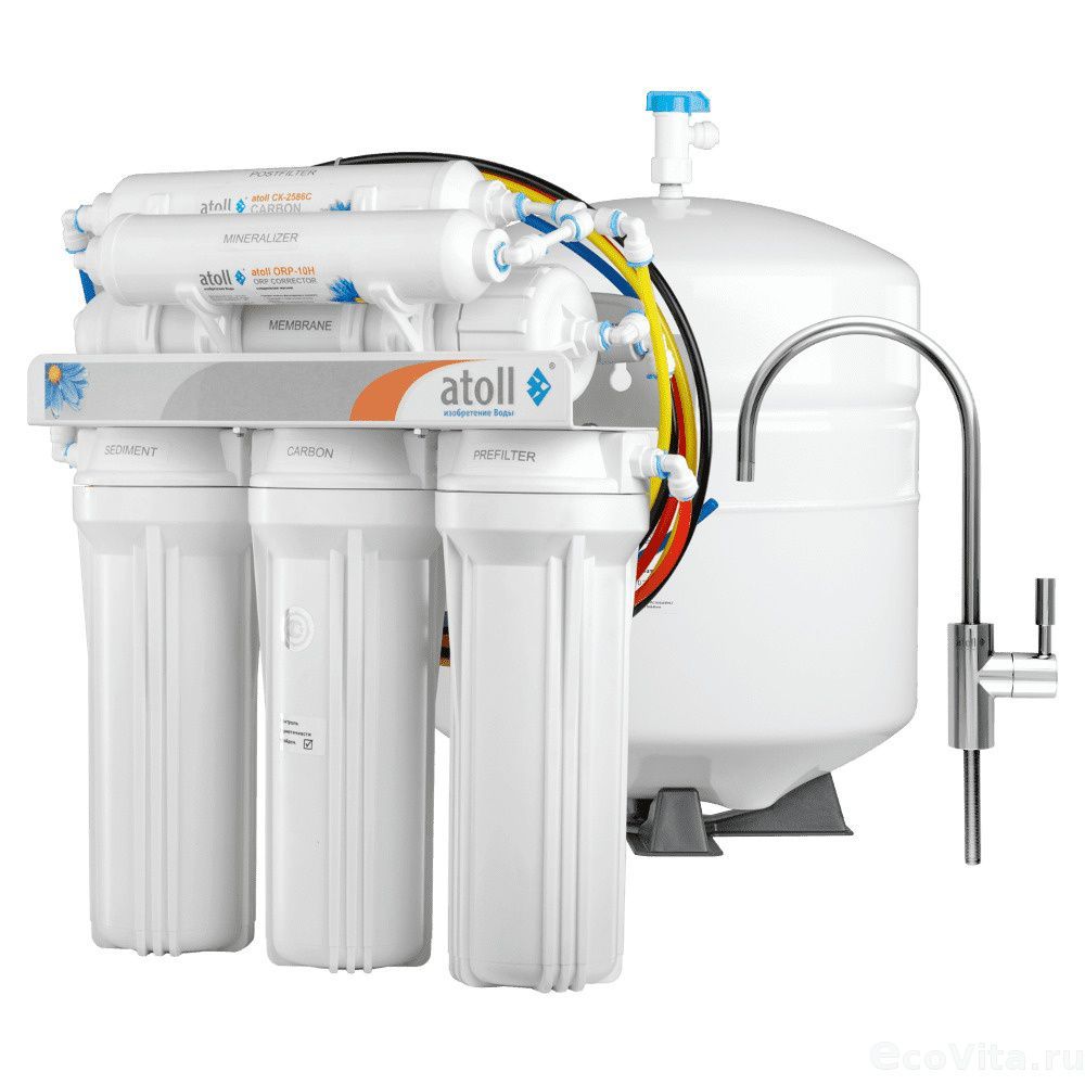 - Постфильтр-минерализатор - Atoll ORP-10H (корректор ОВП) – картридж содержит специальный наполнитель, который снижает значение ОВП воды и делает воду вкуснее;