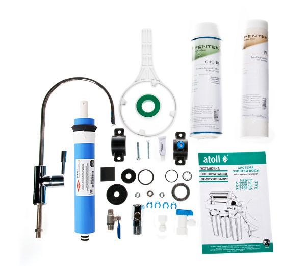 Питьевая система обратного осмоса поставляется в сборе и комплектуется:
