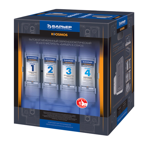 Фильтр Барьер К-ОСМОС на основе обратного осмоса предназначен для глубокой очистки воды от большинства содержащихся в ней вредных веществ. Четыре ступени очистки воды делают воду безопасной для здоровья. Фильтр Барьер K-OSMOS удаляет из воды: хлор, хлорорганические соединения, нитраты, тяжелые и токсичные металлы, соли жесткости, нефтепродукты, бактерии и вирусы, механические загрязнения.