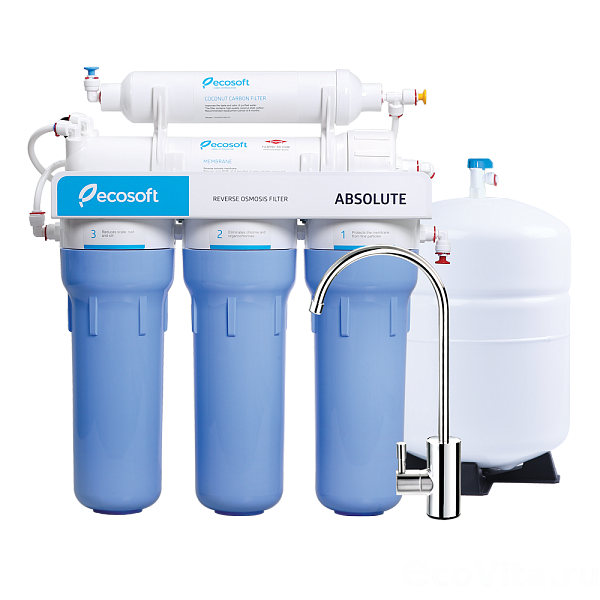 Система обратного осмоса Ecosoft Absolute 5-50 используется для глубокой очистки холодной воды. Очищенная вода приобретает приятный вкус, подходит для ежедневного питья людям любого возраста. Обратноосмотическая мембрана удаляет 99.9% всех примесей в воде. Производительность системы 7.9 л/час.