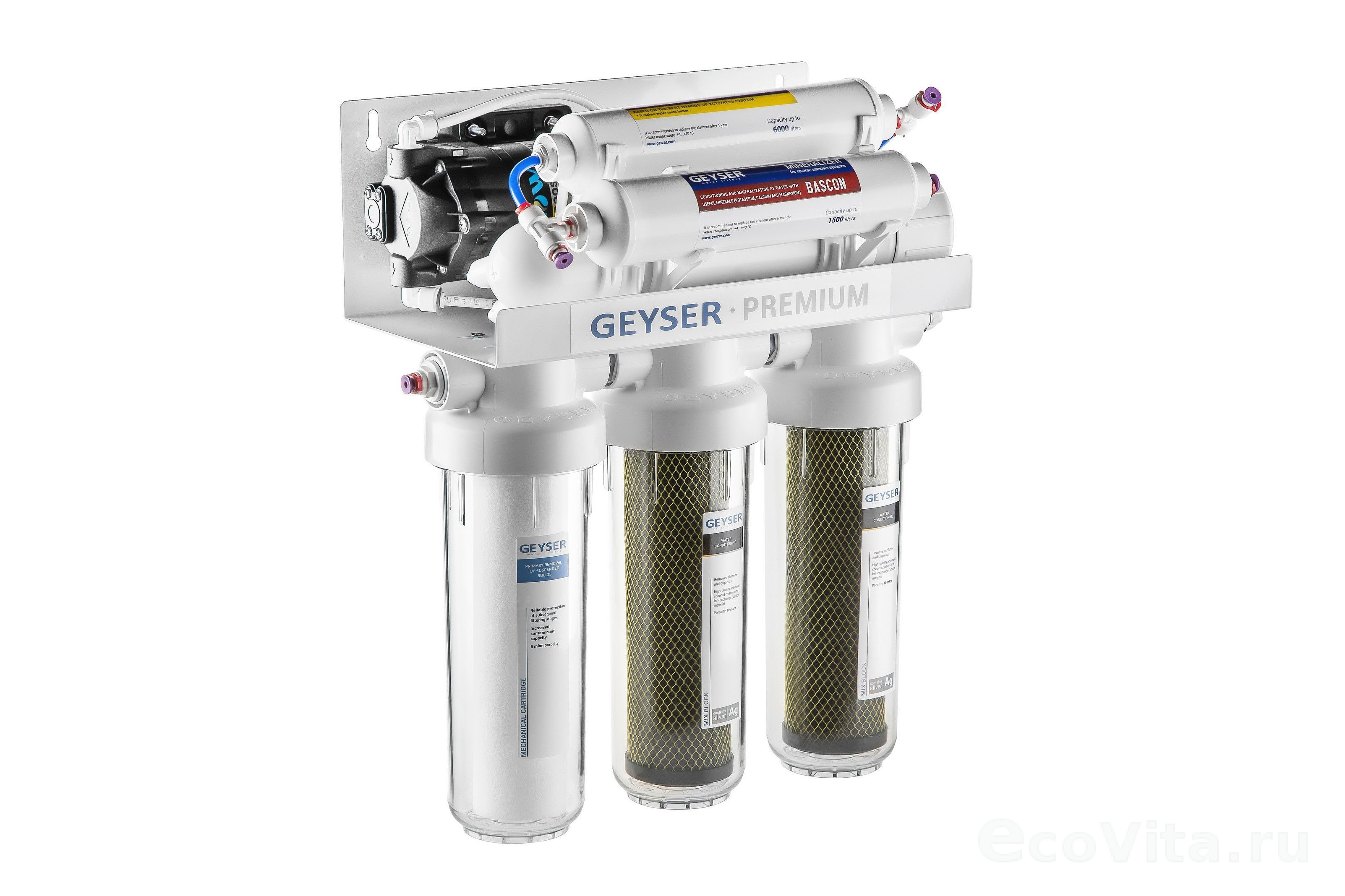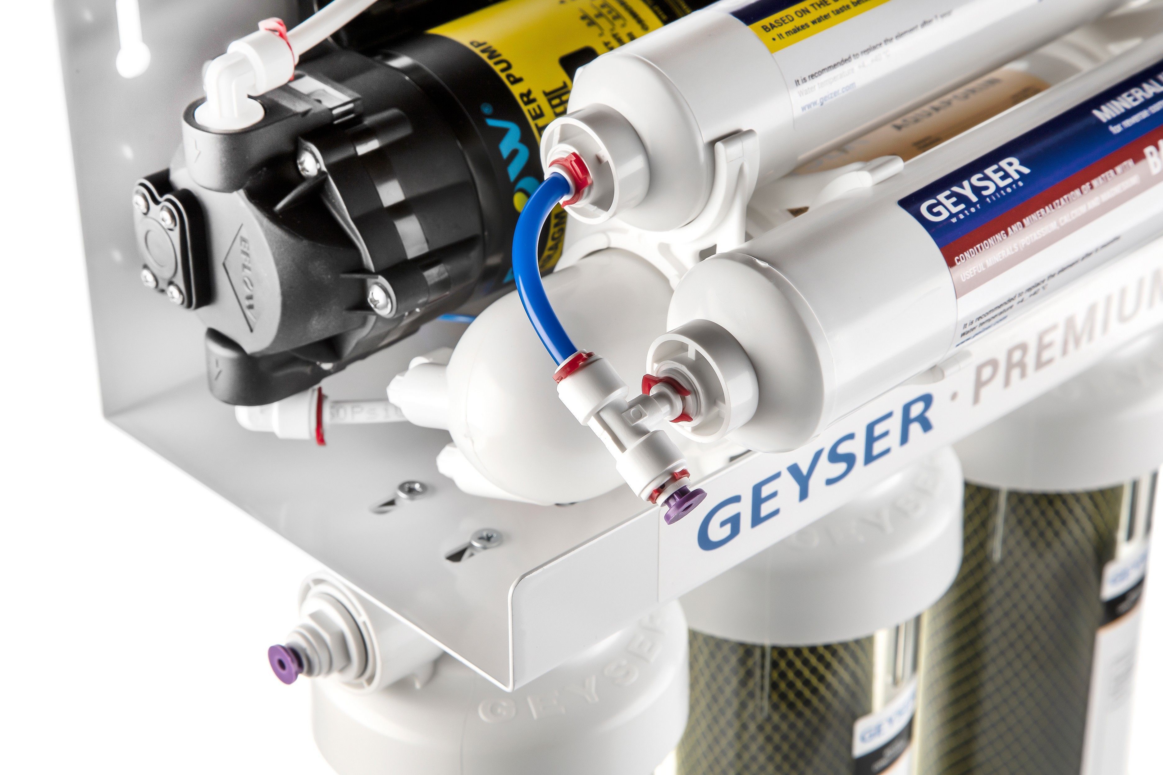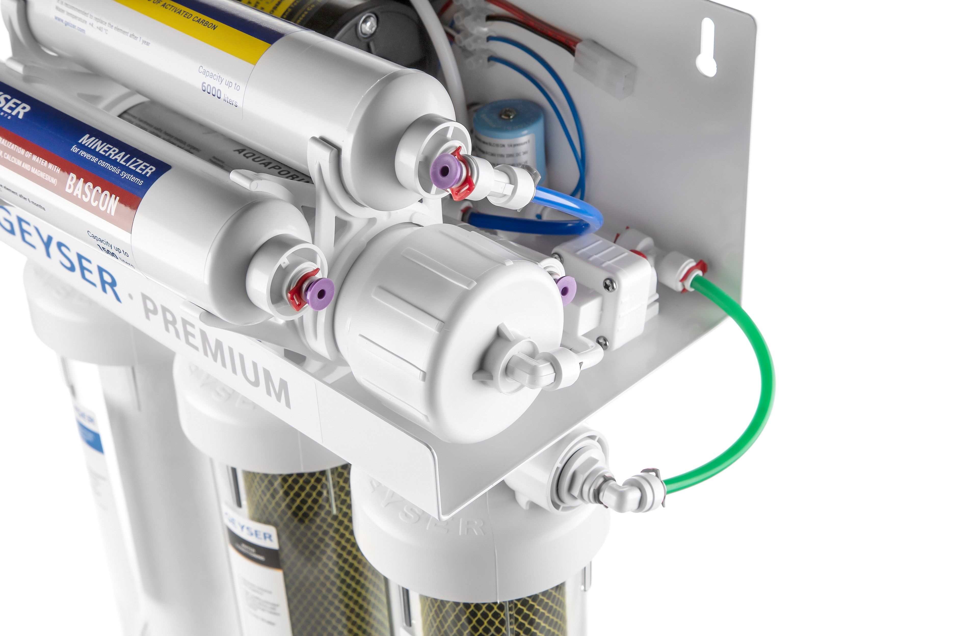 Система обратного осмоса Гейзер Премиум Гейзер Премиум П с помпой повышения давления используется для доочистки водопроводной воды от вредных примесей, таких как железо, бактерии, хлорорганические и органические примеси, хлор, тяжелые металлы, нитраты, механические частицы, избыток солей жесткости, а также для корректировки ее минерального состава, что делает воду абсолютно чистой и безопасной.