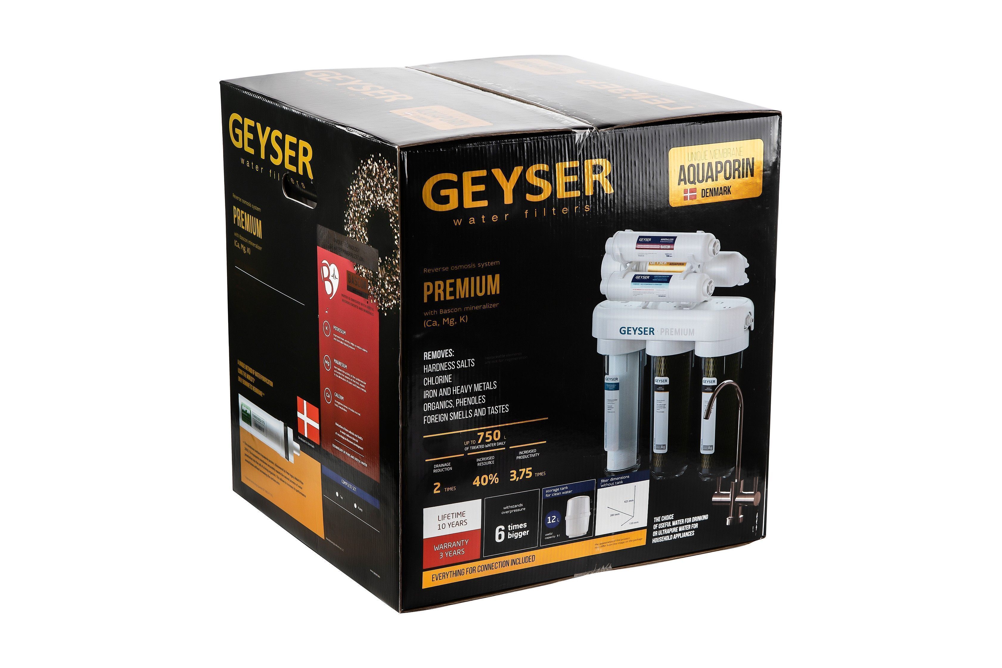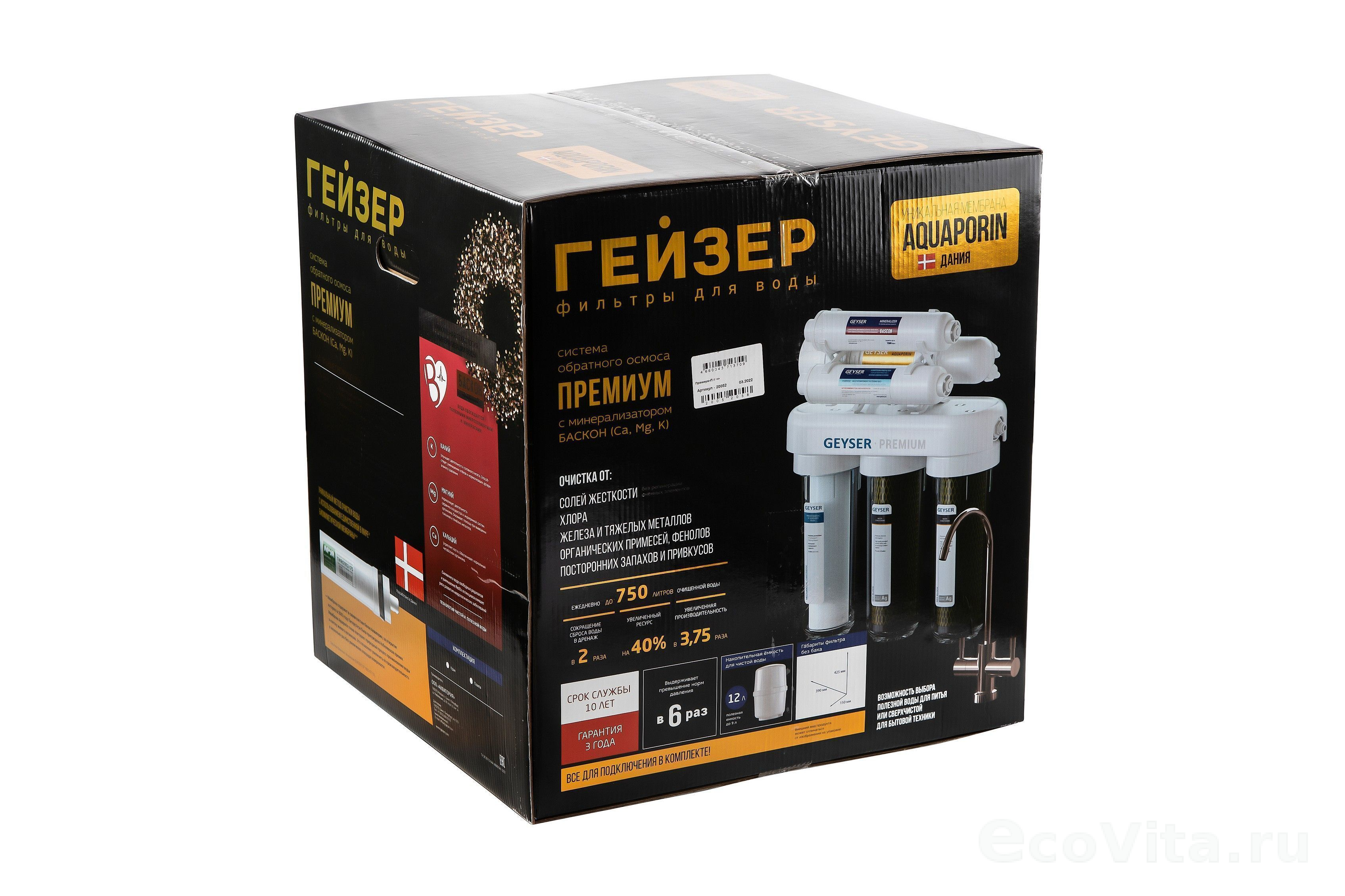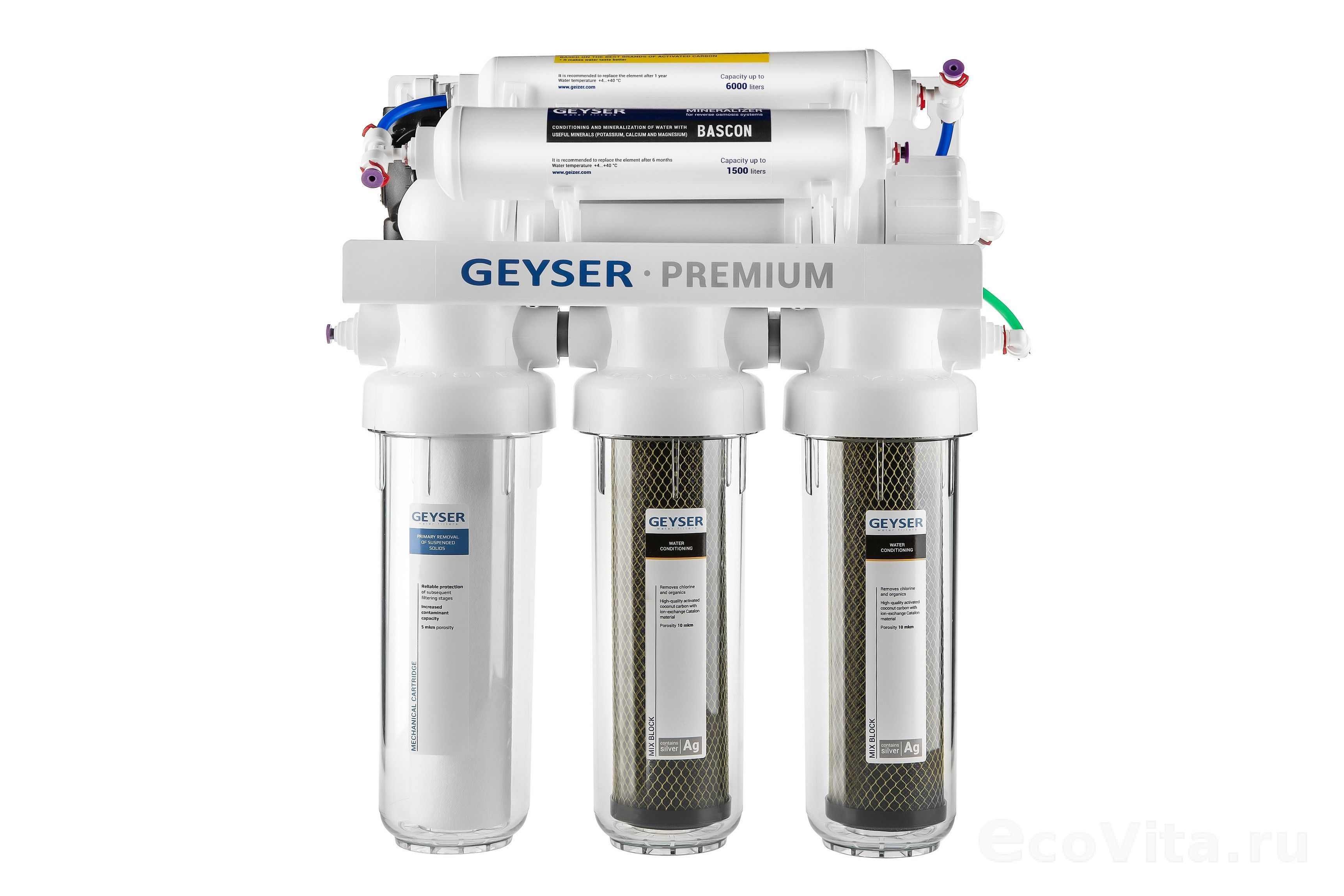 Система обратного осмоса Гейзер Премиум Гейзер Премиум П с помпой повышения давления используется для доочистки водопроводной воды от вредных примесей, таких как железо, бактерии, хлорорганические и органические примеси, хлор, тяжелые металлы, нитраты, механические частицы, избыток солей жесткости, а также для корректировки ее минерального состава, что делает воду абсолютно чистой и безопасной.