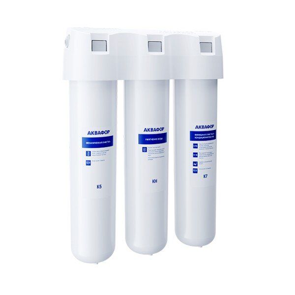 - KH - умягчающий модуль рассчитан на воду малой или средней жесткости (до 4 мг-экв/л) и требует регенерации соляным раствором, при высокой жесткости — раз в 2-3 недели.;