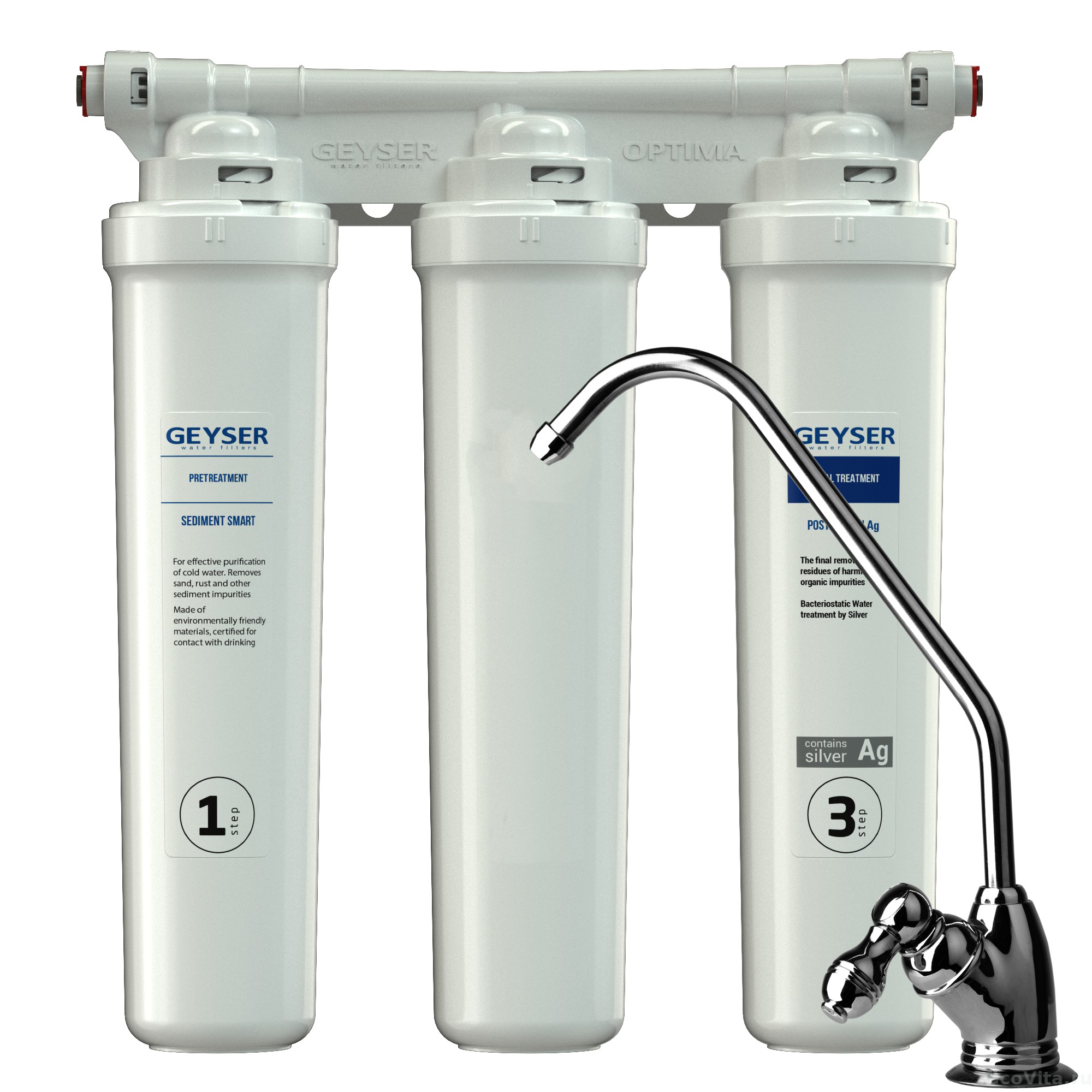 Фильтр Гейзер Оптима Макс Био предназначен для доочистки водопроводной воды от примесей, таких как железо, бактерии, хлорорганические и органические примеси, хлор, тяжелые металлы и механические частицы. Обогащает мягкую воду полезными для организма микроэлементами.