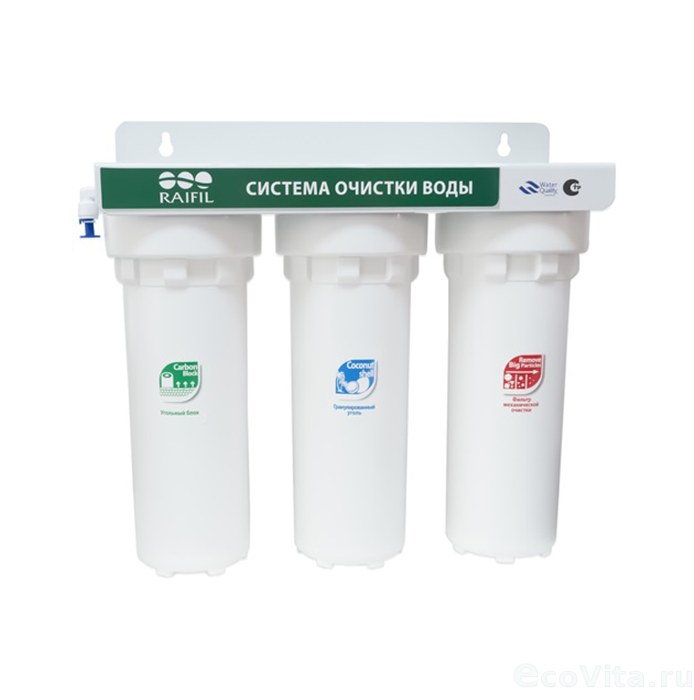 Проточный фильтр "под мойку" Raifil PU808W3-WF14-PR-EZ предназначен для очистки холодной воды от механических загрязнений (ил, песок, окисленное железо, взвеси).