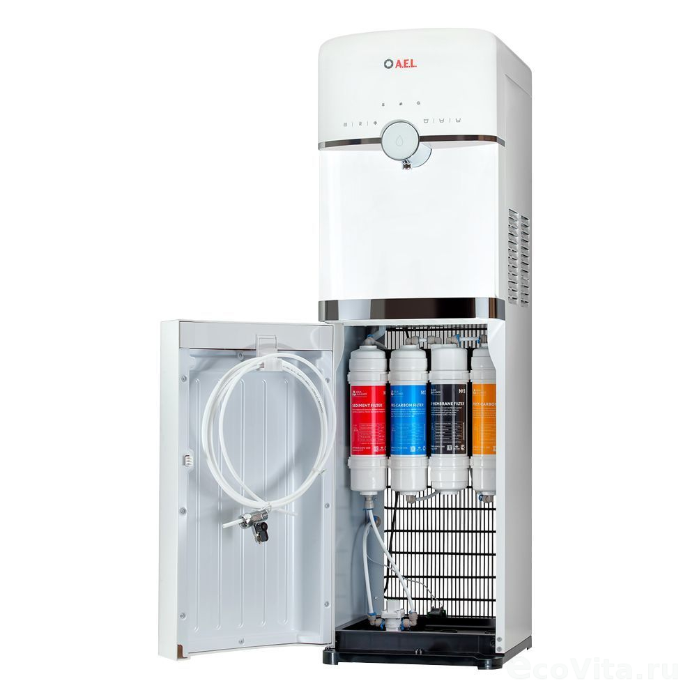 Напольный пурифайер с сенсорным управлением A.E.L. LC-AEL-770s white. Подача и выбор воды осуществляется путем легкого прикосновения на панель управления. Пурифайер работает в двух режимах - используя либо левую или левую и правую панели управления.