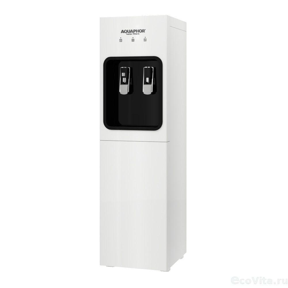 Пурифайер Аквафор WF-D напольного типа подключается к водопроводной системе. В диспенсере установлен фильтра Аквафор OSMO Pro 100 для удаления хлора и его соединений, тяжелые металлы, органические и механические загрязнения, солей жесткости, вирусов и бактерий.