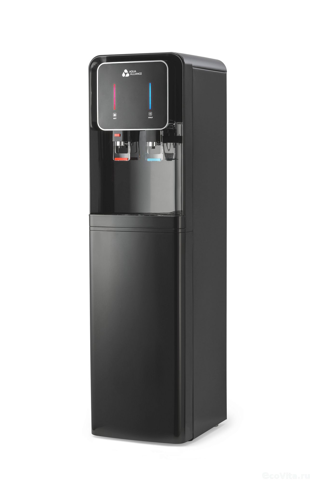 Пурифайер-проточный кулер для воды Aqua Alliance A65s-LC black c компрессорным охлаждением и с 4х UF-системой очистки. Комплектация: кран врезки, трубка ¼ 3 метра, фильтры 12 U тип, инструкция.