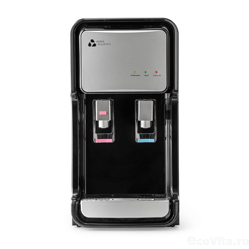 Пурифайер-проточный кулер для воды Aquaalliance V11s-TC black/silver с компрессорным охлаждением с UF фильтрацией. Модель укомплектована удобными краниками нажим чашкой.