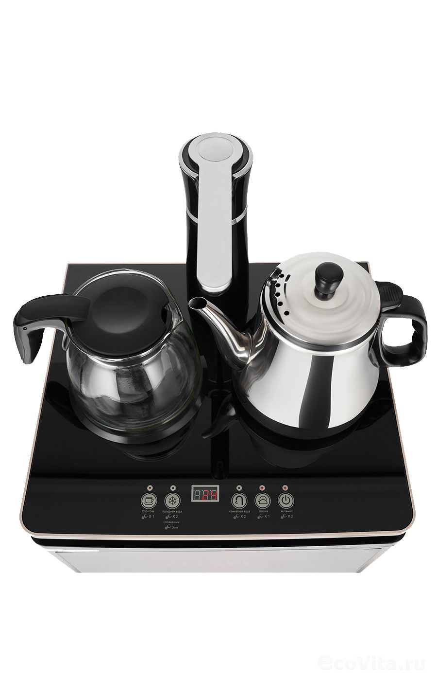- Отключать/включать режим подогрева заварного чайника. Объем чайников 1 л. Допустимый объем воды в чайнике для нагрева 0,8л. Высота с краном 980мм