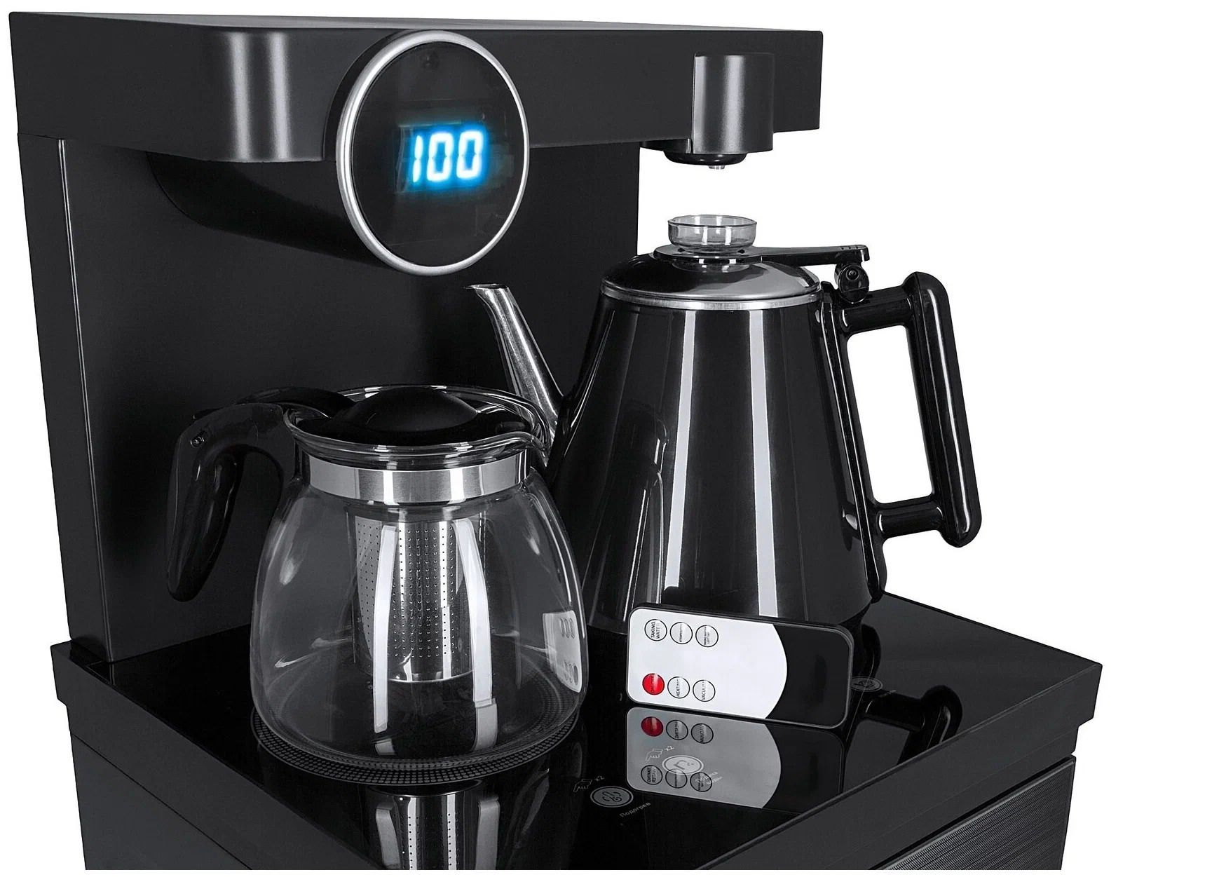 Тиабар Ecotronic TB12-LNR black – это напольный кулер с чайным столиком. Пульт дистанционного управления. Нижняя загрузка бутыли. Два чайника – для кипячения и заварочный. Без охлаждения, только нагрев. Нагрев воды в чайнике до 100°С. Шкафчик для хранения.