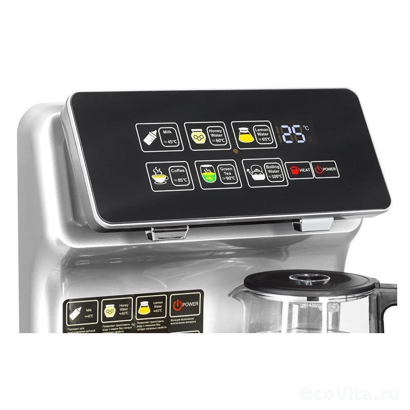 Тиабар оснащен пультом дистанционного управления, работающим на расстоянии до 7 метров. Сенсорной панелью на русском языке. Двумя нагревательными панелями. Шесть режимов нагрева воды позволят задавать нужную температуру. Режимы маркированы в соответствии с напитками, для которых подходит эта температура: