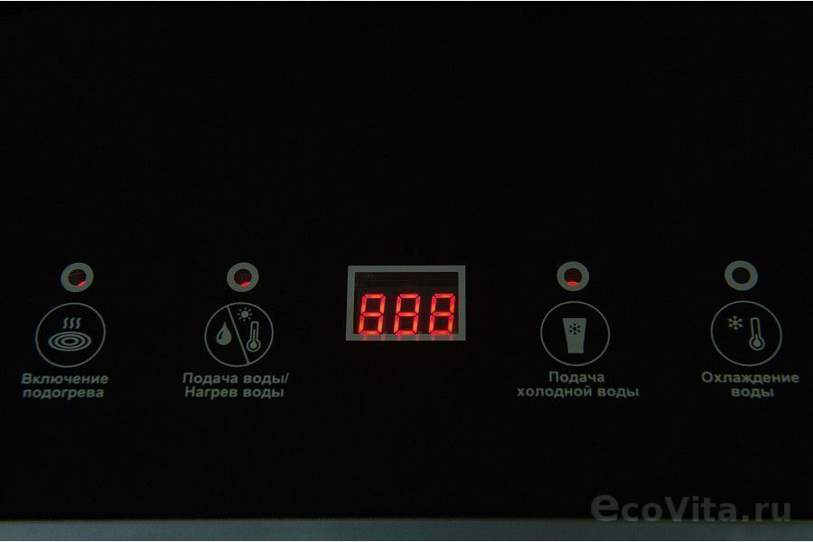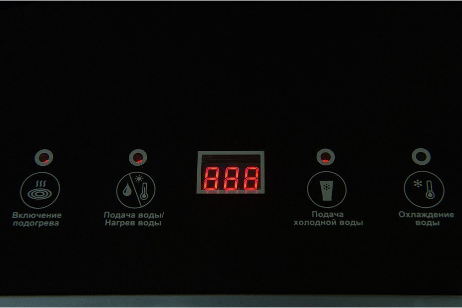 - Отдельной кнопкой на панели включается охлаждение воды, после чего поддерживается автоматически, до принудительного отключения. Холодная вода подается из крана по нажатию кнопки "подача холодной воды".
