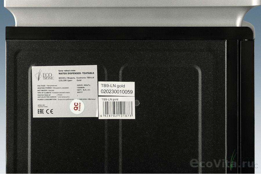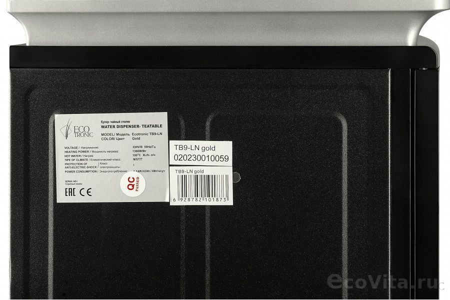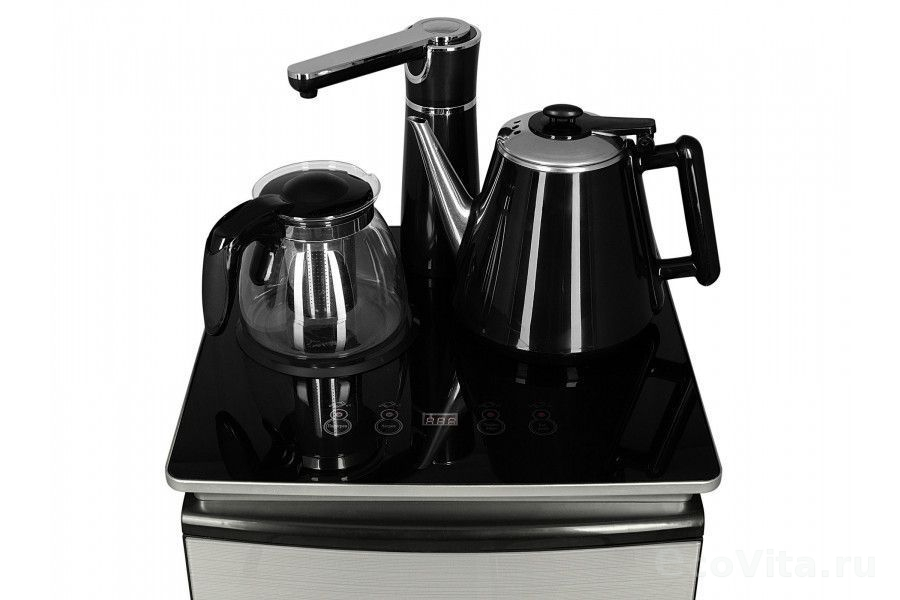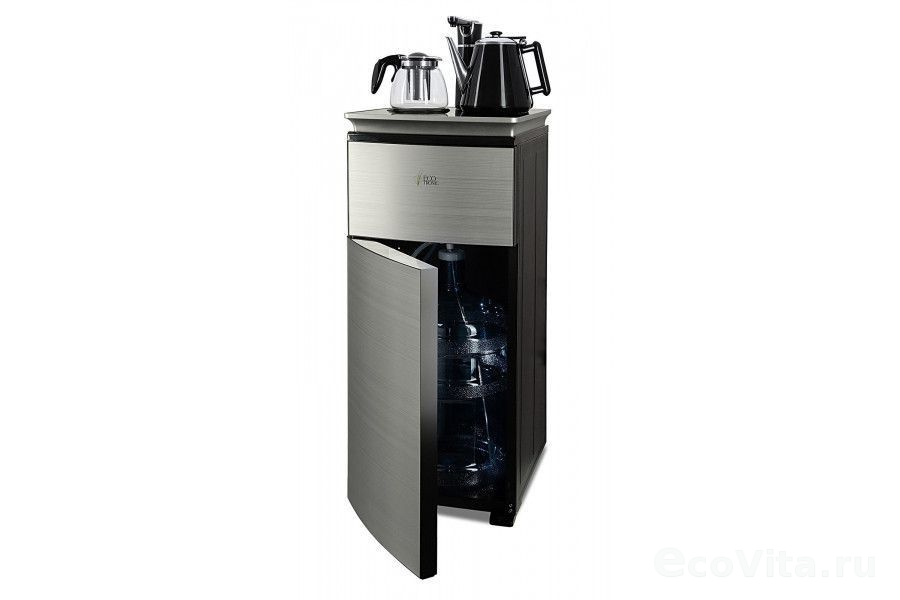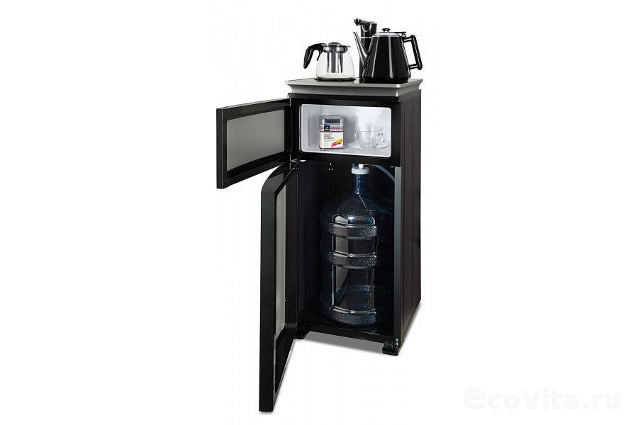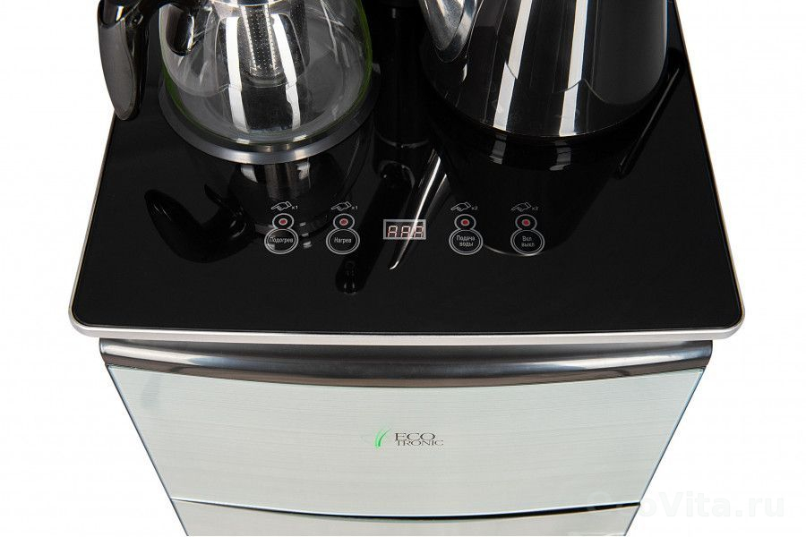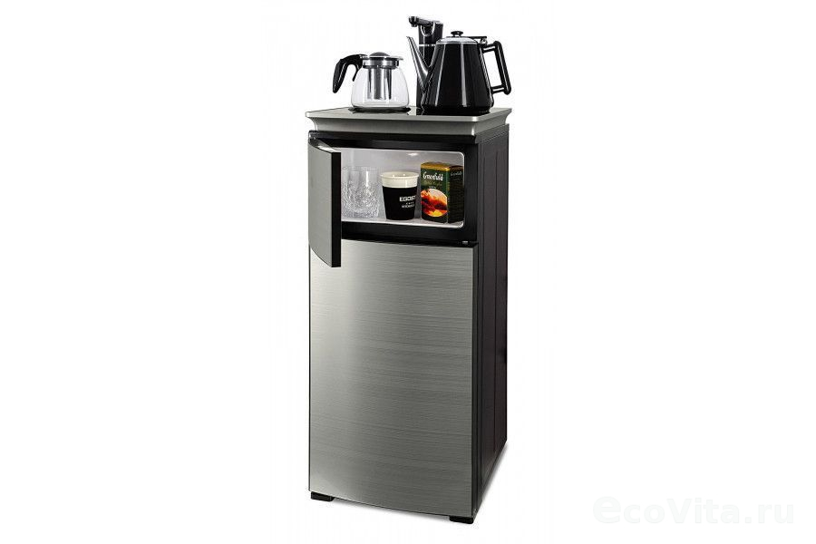 Тиабар Ecotronic TB9-LN silver – это напольный кулер с чайным столиком. Нижняя загрузка бутыли. Без охлаждения, только нагрев. Нагрев воды в чайнике до 100°С. Два чайника – для кипячения (изотермический) и заварочный. Шкафчик для хранения.