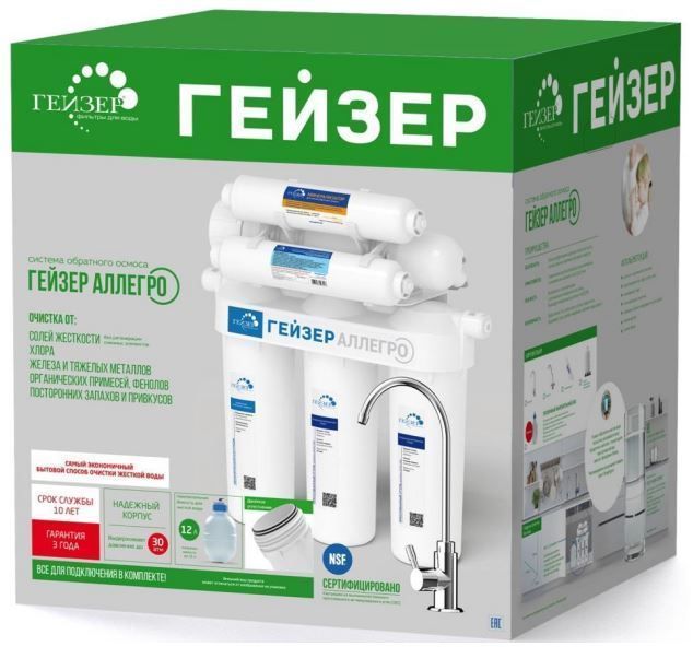 Абсолютно уверена, что здоровье зависит напрямую от качества и количества потребляемой воды. Качественная чистая вода - не роскошь, а необходимость для здоровья и красоты. По этой причине на фильтре не экономили. Когда выбирали фильтр в магазине и консультант рассказал про Аллегро, обосновал, что этот вариант подходит. во первых у фильтра есть минерализатор, который насыщает отфильтрованную воду полезными солями и минералами. Во вторых, на кране есть 2 вентиля, то есть можно включить минерализированую, а можно просто очищенную. Пьем ту, что с минералами, а готовлю просто на чистой. Цена фильтра, конечно, высокая (отдали больше восьми тысяч), но когда речь идет о здоровье, экономить глупо. Установили нам фильтр, бесплатно.