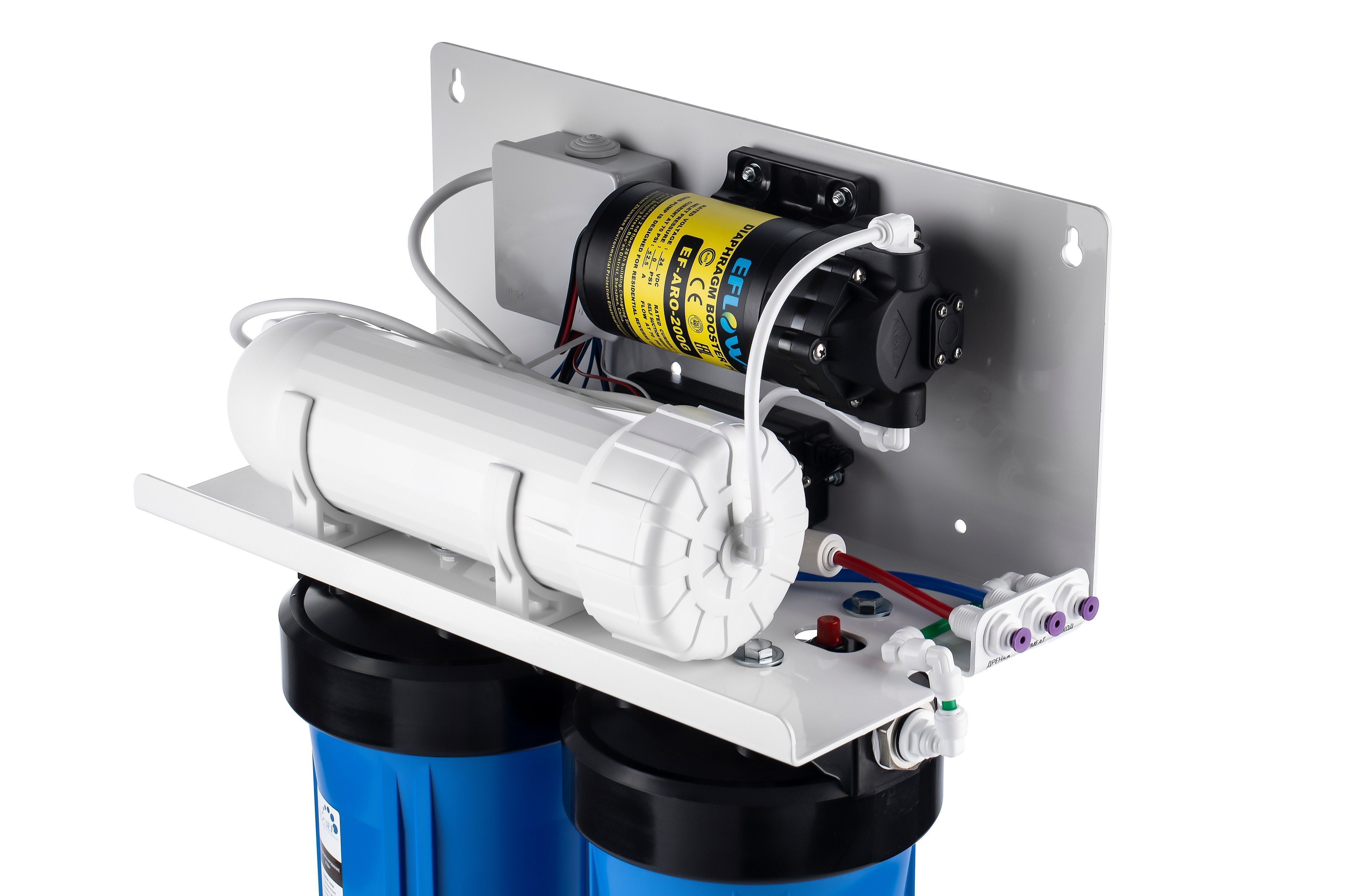 ? Фильтр оснащен насосом повышения давления и всеми датчиками необходимыми для работы насоса. Может работать при давлении от 1 амт.