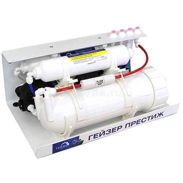 Компактный фильтр Гейзер Престиж Профи (исп. 2) разработан с применением технологии обратного осмоса. Фильтрация воды происходит через полупроницаемую мембрану, поры которой пропускают только молекулы воды и кислорода. Так как размер молекул большинства примесей, бактерий и вирусов значительно больше молекул воды, мембрана успешно задерживает их. Эффективно очищает воду с повышенной жесткостью.
